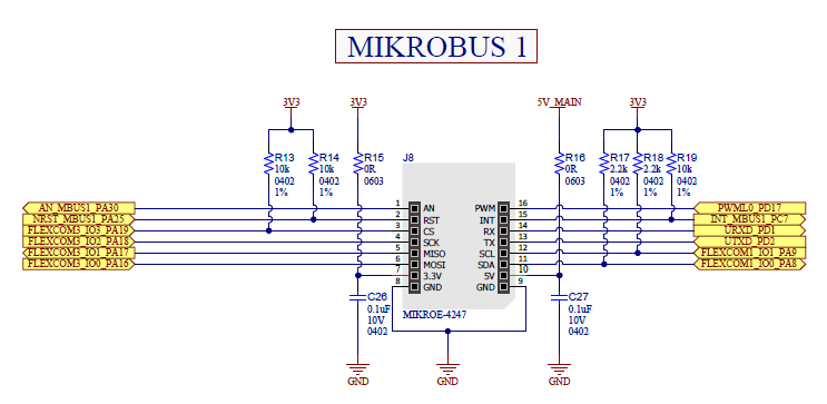 This configuration follows the Xplained-PRO and mikroBUS interfaces definition for PIC32CXMTG-EK board used on this example: