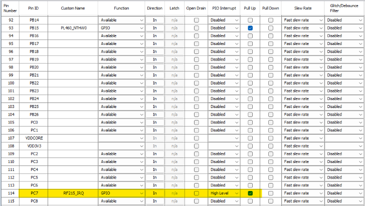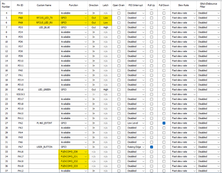 - Configure pins highlighted in yellow, the rest of pins are auto-configured by the