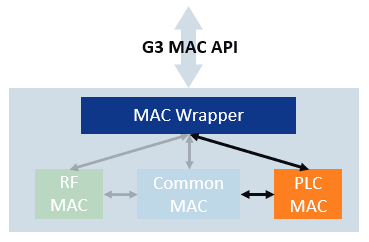 The G3 MAC PLC module is in charge of managing the PLC interface. It relies on MAC Common to store some of its resources (those shared with MAC RF).