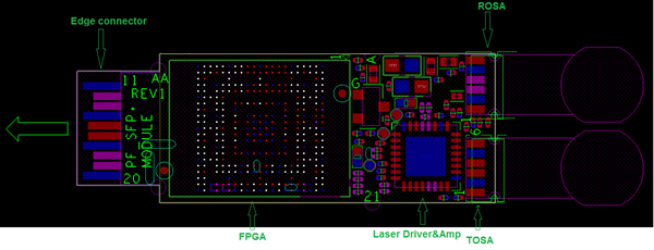 The following figure shows the top view of the FPGA placement.