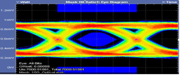 The following figure shows that eye mask parameters were met by the device and a zero hit ratio was observed.