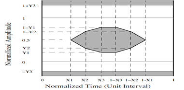 This defines the minimum eye width and height that must be met for the signal to be transmitted clean and without error.