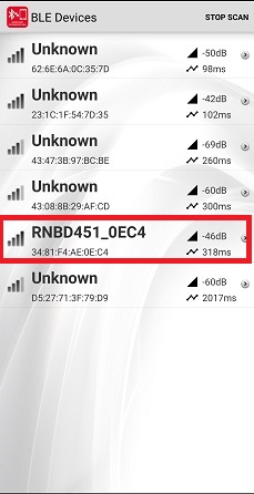 for Bluetooth devices within a range. Look for "RNBD" devices under the scanned list.