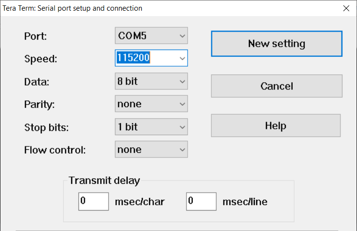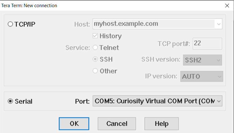 - For Transparent Serial only: Open a "Serial Terminal" Program such as Tera Term,