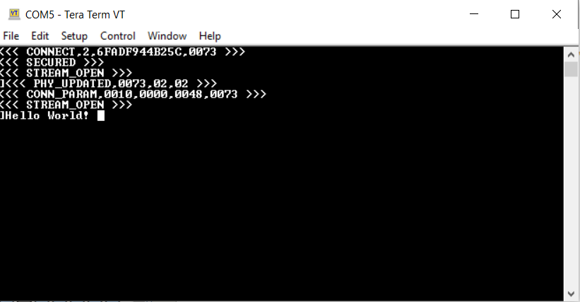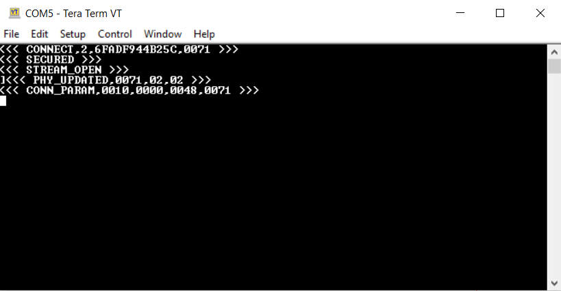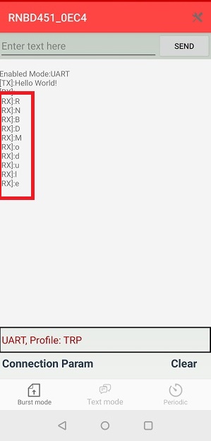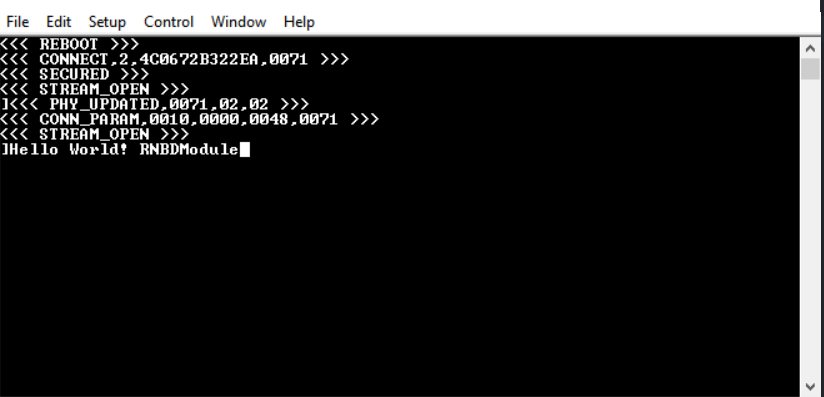 - The data will be received at the RNBD45x side and will be displayed in serial terminal of RNBD45x