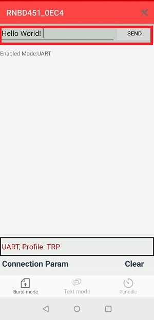 - Enter the text to be transferred from mobile to RNB45x device and click send button