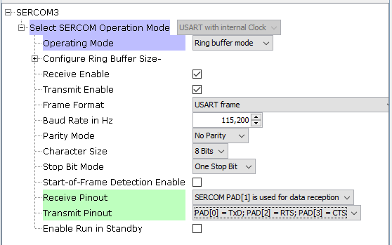 SERCOM3 Pin Setting is same as mentioned under Basic Data Exchange above.