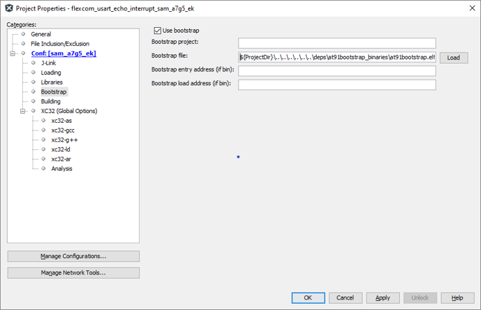 “at91bootstrap.elf” file (The “Bootstrap entry address” and the “Bootstrap load