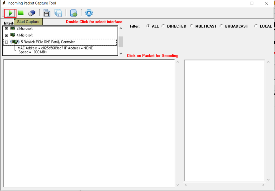 Figure 3-11. Incoming Packet Capture Tool—Start Capture