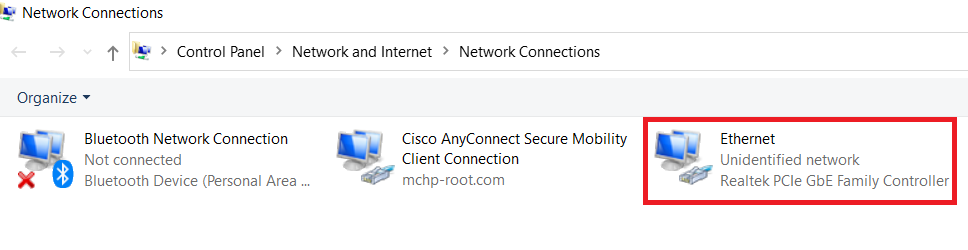 figure. On a Windows 10 machine, this connection is Ethernet.