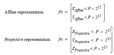 In this implementation, several choices have been made related to the coordinate systems managed by the elliptic curve primitives.