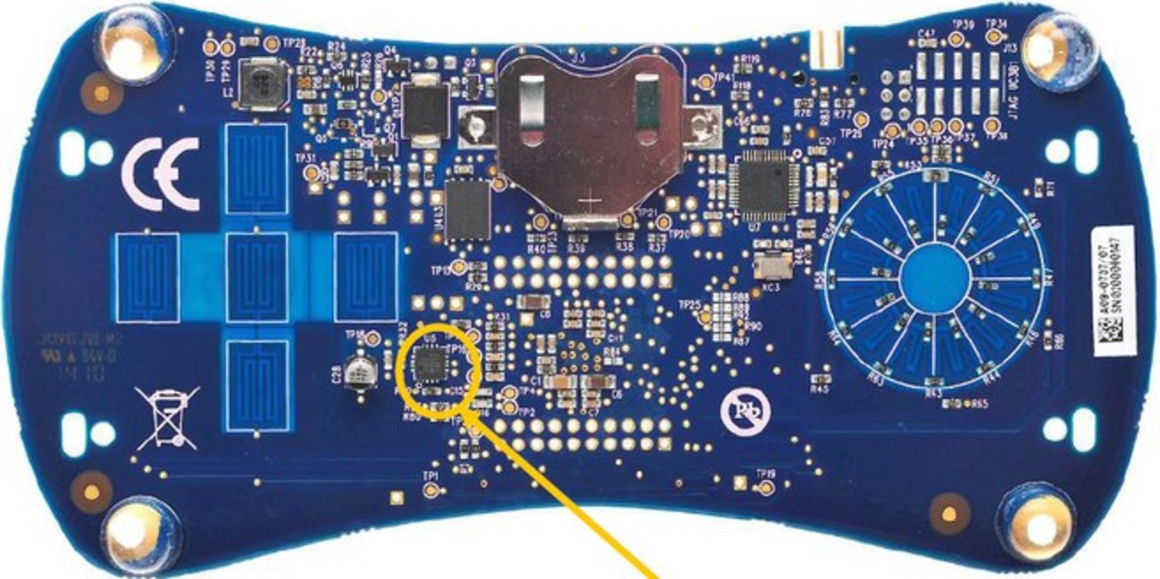 The RST pushbutton is used to generate an external reset to the AT32UC3L064. A three-axis accelerometer is connected to three channels of the AT32UC3L064's ADCIFB IP.