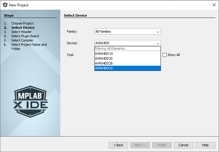 and click Next.Figure 5-4. Device Selection WindowThen select the board and the desired compiler, if there are any.
