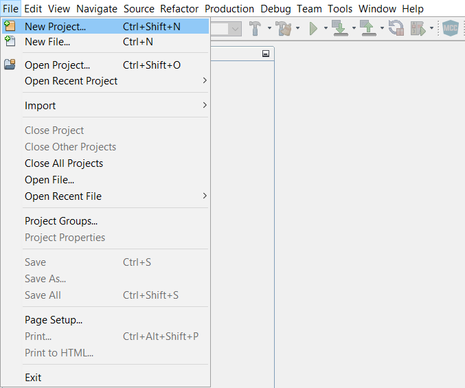 File → New Project... or by using the Ctrl+Shift+N shortcut, as