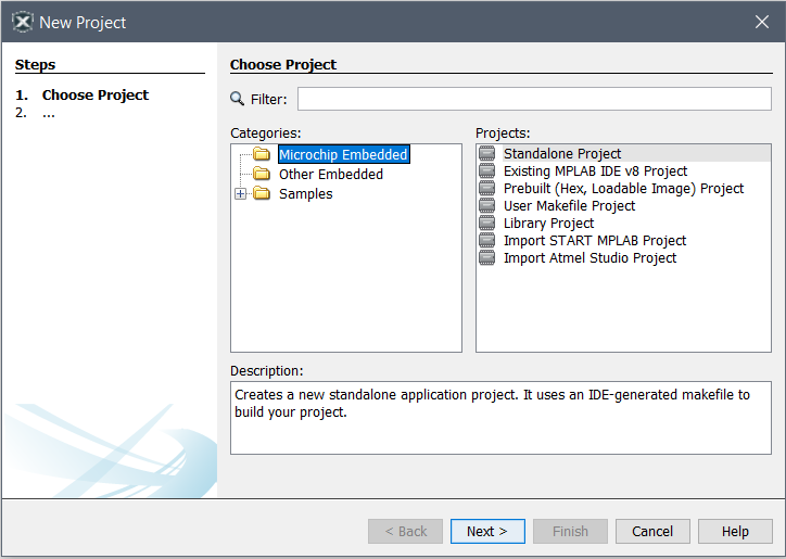 Embedded and Projects → Standalone Project template from Figure 5-6, and click Next.Figure 5-3. New Project Window