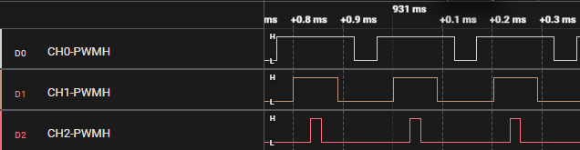 This example application shows how to use the TCC to generate a 2 or 3 phase PWM signals for motor control with dead time.