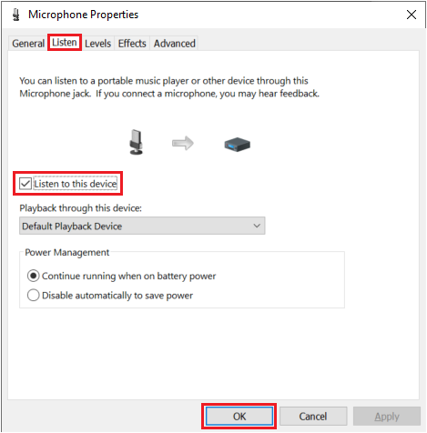 In the SPDIF In Properties window, go to the Listen tab. Then, enable