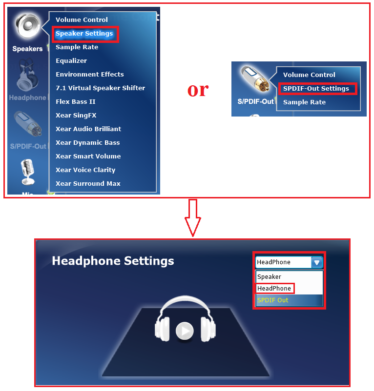 default, right-click on the S/PDIF-Out or Speakers icon, then navigate