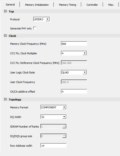- Generate PHY only: Enable this option to create a PHY-only LPDDR3 subsystem.
